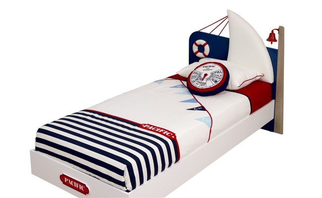 With a bed frame shaped as a sail and door handles shaped as cute steer will fill the room with the enchanting winds of open seas! Challenge the winds, waive to the sea gulls! Live your childhood to the fullest in your own free world!